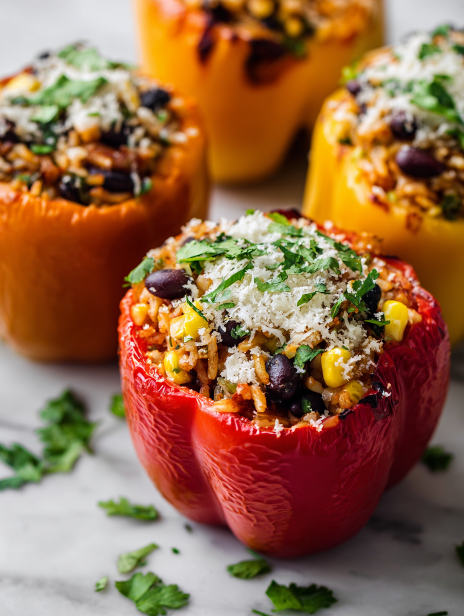 Rest the baked peppers for 5 minutes after removing from oven to help the filling set and prevent spills.