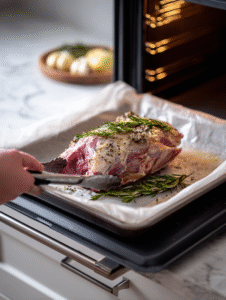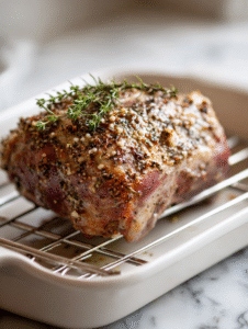 - Roasting rack: Ensures even heat circulation and keeps the meat elevated for better browning.