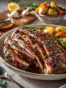 - Serve the slices with a drizzle of pan juices or sauce, accompanied by roasted vegetables or your favorite sides for a hearty, festive meal.