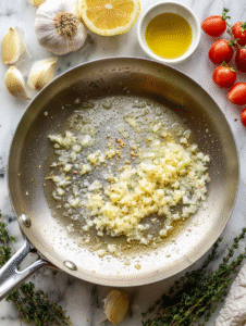 Step 2: Heat a good splash of olive oil in a large skillet over medium heat, around 160°C (320°F). Add minced garlic and shallots, sauté until fragrant—about 2 minutes.