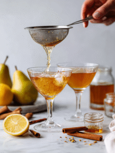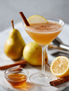 Holiday cocktails often feel like a hurried tradition, but this one invites you to slow down and savor. The idea of blending warm spices with fresh fruit feels both nostalgic and surprisingly modern. It’s a small act of indulgence that turns ordinary evenings into something special. The scent of cinnamon and ripe pear filling the room can change the whole vibe, even before the first sip.