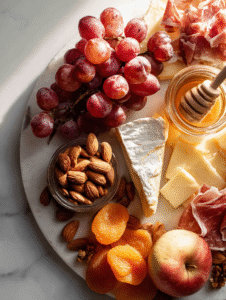 - Fruits: Juicy grapes, tart apples, or fig slices brighten the board with freshness and sweetness.: Use seasonal fruits for the best flavor and vibrancy.