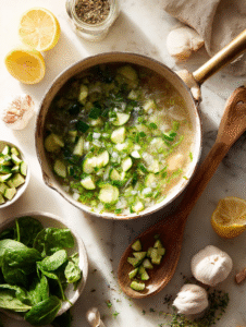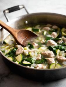 For a richer broth, use bone-in chicken thighs. Feel free to add other greens like kale for variation. This soup keeps well in the fridge for up to 3 days and can be reheated easily.