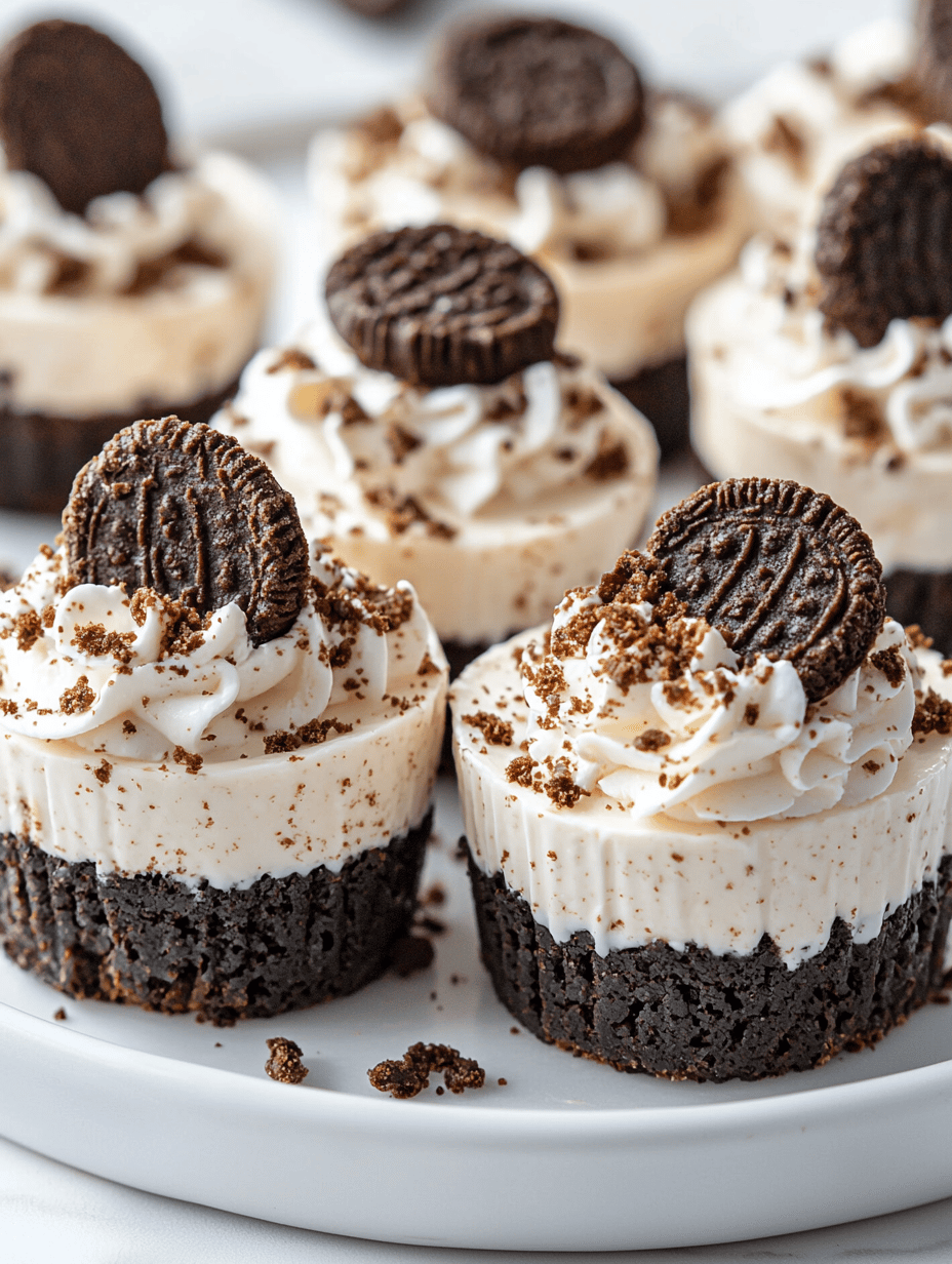 These no-bake cheesecake cups combine crushed cookies with a creamy cheese filling, resulting in individual servings with a crunchy base and smooth, rich top layer. They are assembled without baking, featuring a melt-in-the-mouth texture complemented by cookie crumb crunchiness and a vanilla-chocolate aroma.