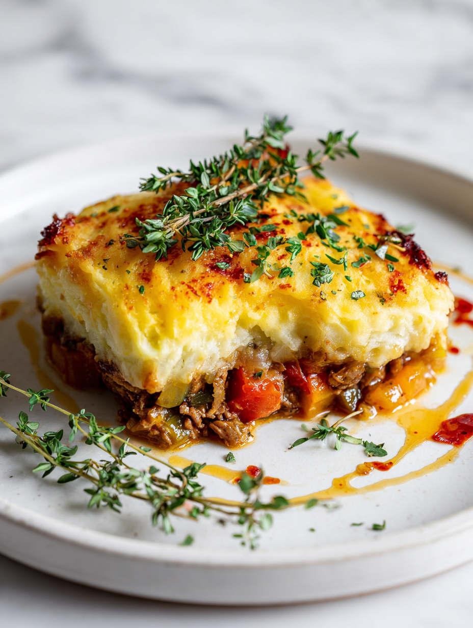Remove from the oven and let rest for 5–10 minutes, allowing the filling to set and making it easier to serve. Scoop out portions and enjoy your hearty, smoky shepherd’s pie.